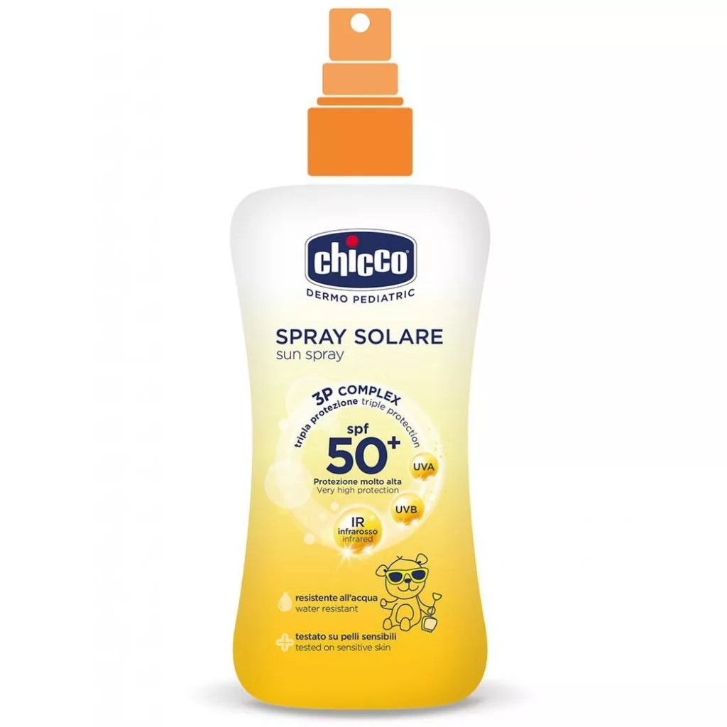 Солнцезащитный спрей Chicco обладает высоким фактором фотозащиты SPF 50+ и рекомендован для чувствительной и нежной детской кожи. Ультрафиолетовые лучи UVA и UVB особенно вредны для детской кожи, поскольку естественная защита ребенка от солнца намного слабее, чем у взрослого. Солнцезащитная косметика Chicco обеспечивает необходимую защиту для безопасных прогулок на солнце.