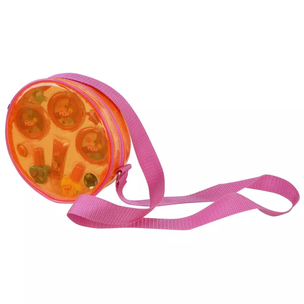 Яркая, стильная и удобная сумочка в модном сейчас оранжевом неоновом цвете сама по себе порадует юную модницу, а уж набор косметики в ней и вовсе осчастливит!