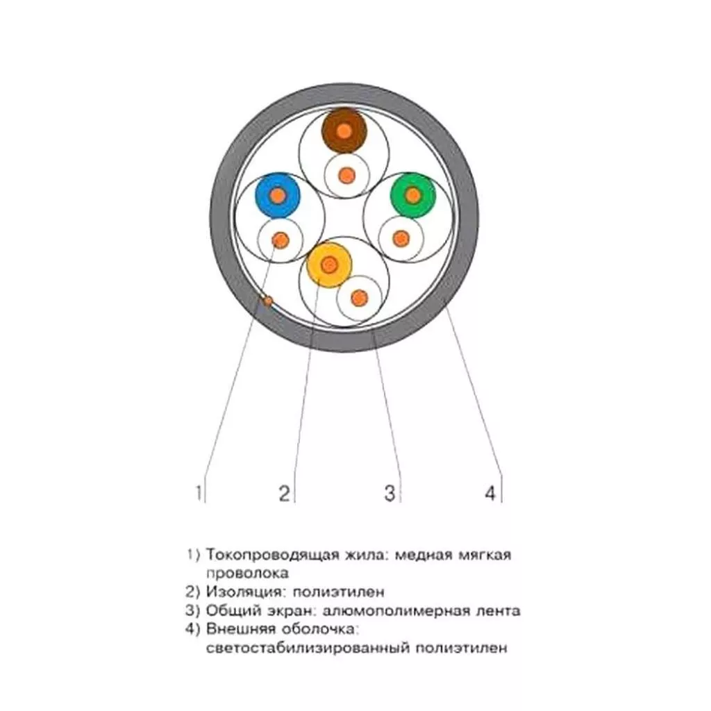 Кабель сетевой OK-Net FTP внешний 305м (КППЭ-ВП (250) 4х2х0,57)