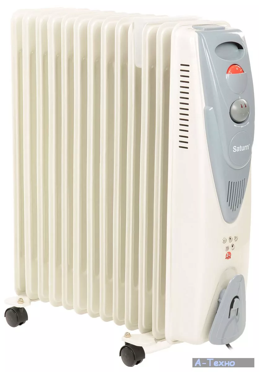 Масляные обогреватели пользуются большим спросом у покупателей, благодаря своей бесшумной работе, возможности удобного перемещения и щадящему обогреванию воздуха. Масляный обогреватель SATURN ST-OH0414 характеризуется высокой мощностью 2500 Вт, имеет полотенцесушитель и увлажнитель воздуха, механическое управление тремя режимами обогрева и 13 рабочих секций.