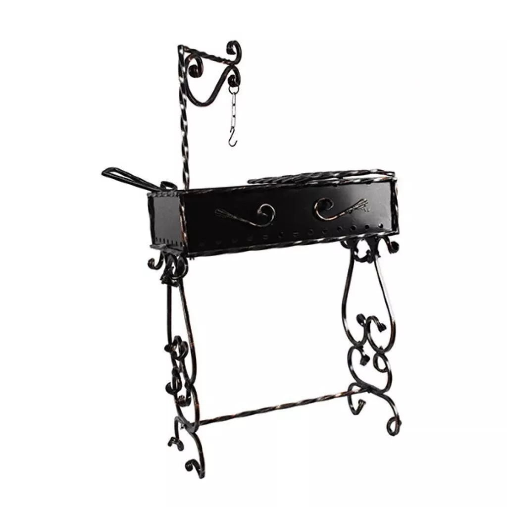 - это просто необходимая вещь для любителей приготовления еды на костре. Мангал кованый прекрасно впишется в интерьер Вашего двора или сада. Предназначен для размещения 10 шампуров. В комплекте с мангалом есть кочерга.