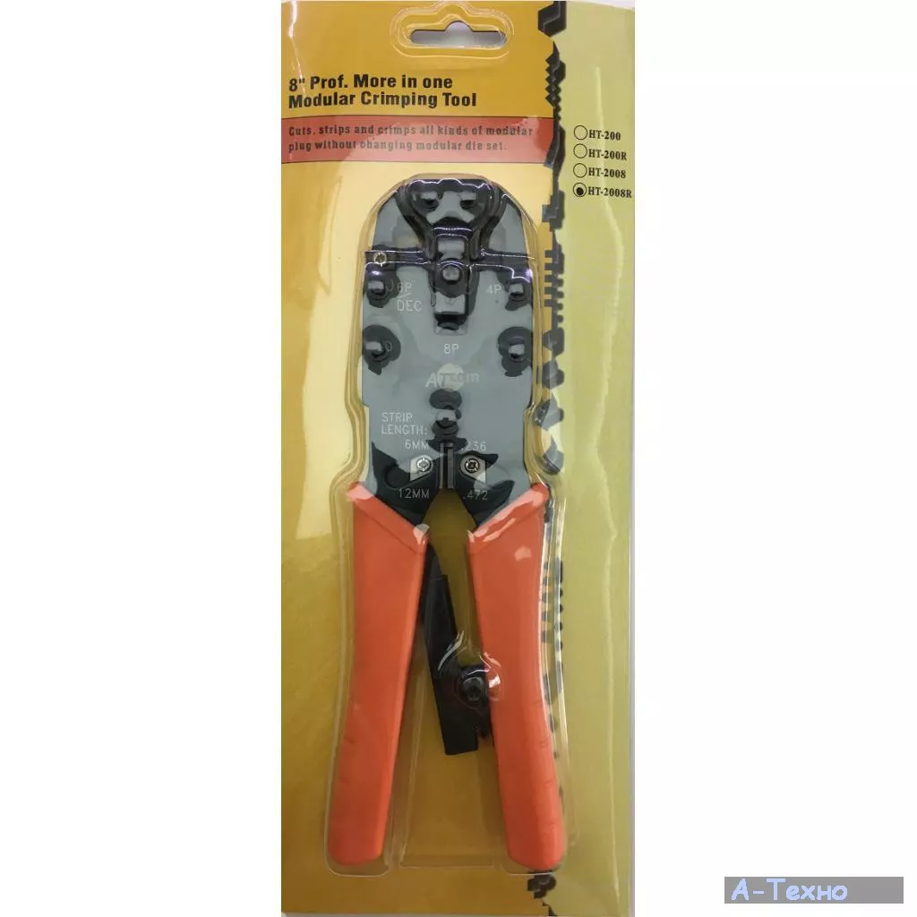 Многофункциональный профессиональный обжимной инструмент ATcom 2008R, с резаком и зачисткой изоляции. Обжим: 8P8C-RJ45; 6P6C-RJ12; 6P4C-RJ11; 4P4C; 4P2C; & 6P6C-DEC; и экранированных 8P8C-RJ45 модульных вилок.