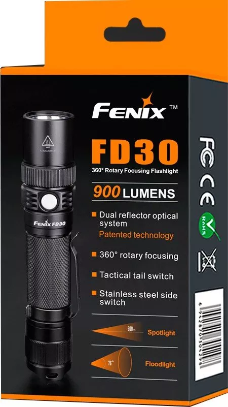 Фонарь Fenix FD30 вошел в одну из самых молодых серий от компании Fenix — с возможностью регулировать расстояние фокусировки луча.