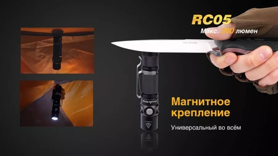 Фонарь RC05 от бренда Fenix — это очень компактная модель, которая может использоваться в качестве ручного осветительного прибора или фонарика-брелка.