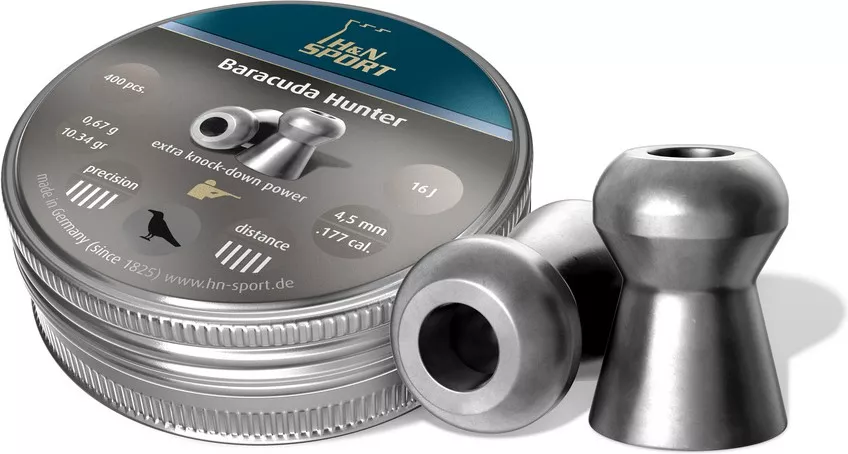 Тяжелые, чрезвычайно точные охотничьи пули для дальних дистанций. Baracuda Hunter – усовершенствованные пули Baracuda с улучшенными аэродинамическими характеристиками. Пули обладают максимальной пробиваемостью, проникающей способностью и деформацией при попадании. Демонстрируют высокую кучность. Поверхность гладкая с глубокой выемкой в головке. Рекомендуемая дульная энергия – от 16 Дж. Оптимальная область применения – 50 м.