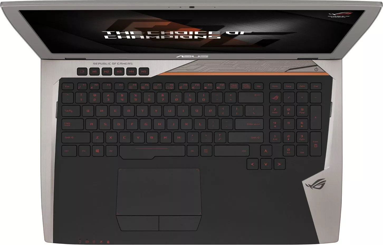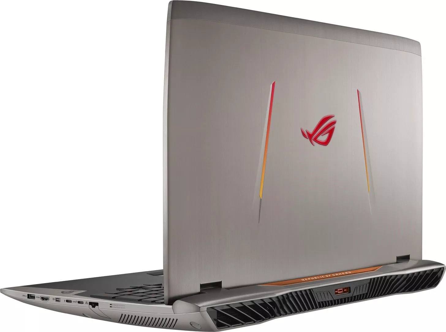 Для тех, кто предпочитает мощные, но мобильные решения, команда ROG предлагает ноутбук G701VI. За счет мощной конфигурации, включающей в себя разгоняемый процессор Intel Core седьмого поколения и видеокарту NVIDIA GeForce GTX 1080, он ничуть не уступает по своей производительности стационарным геймерским компьютерам самого высокого класса. Дисплей ROG G701VI отличается высоким разрешением (3840х2160) и поддерживает технологию NVIDIA G-SYNC, обеспечивающую более высокое качество игровой графики. Корпус этого ноутбука выполнен в стильном темно-серебристом цветовом оформлении с медно-оранжевыми акцентами.