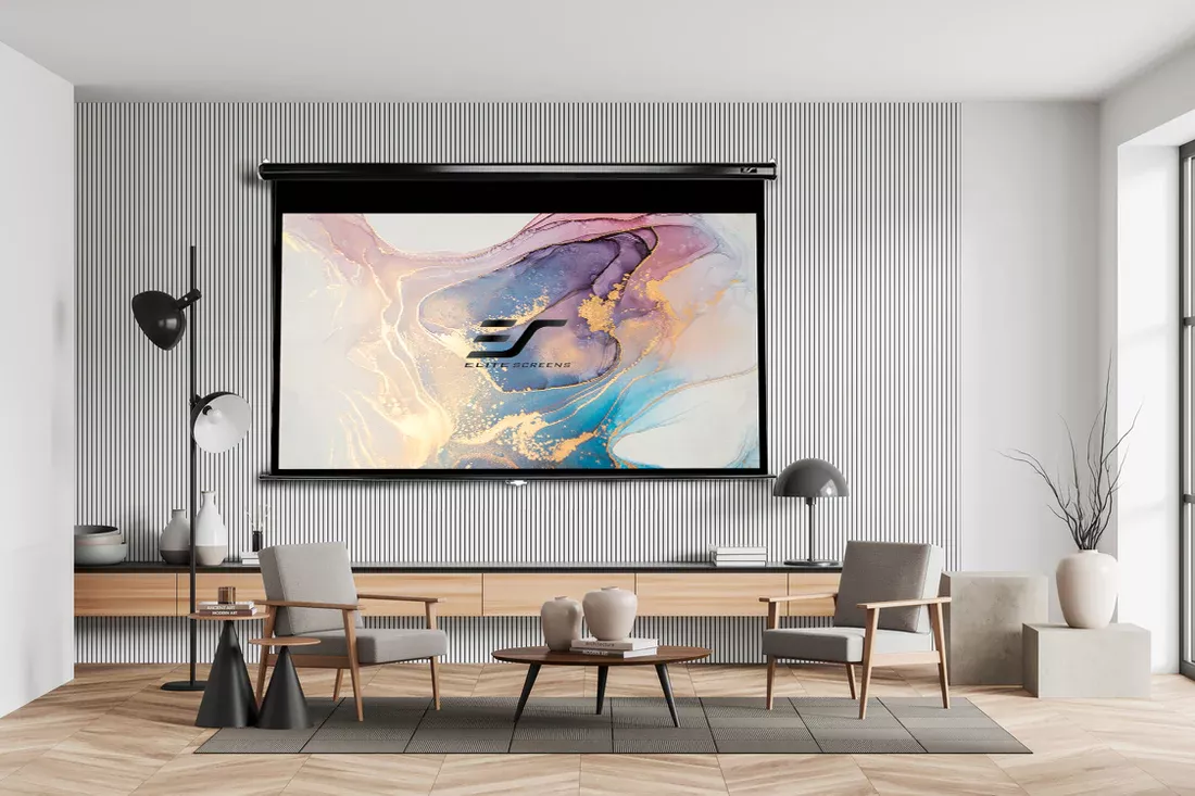 ELIT SCREENS M100UWH - это 100-дюймовый проекционный экран с соотношением сторон 16:9, который предназначен для отображения картинки, которую выдает проектор.