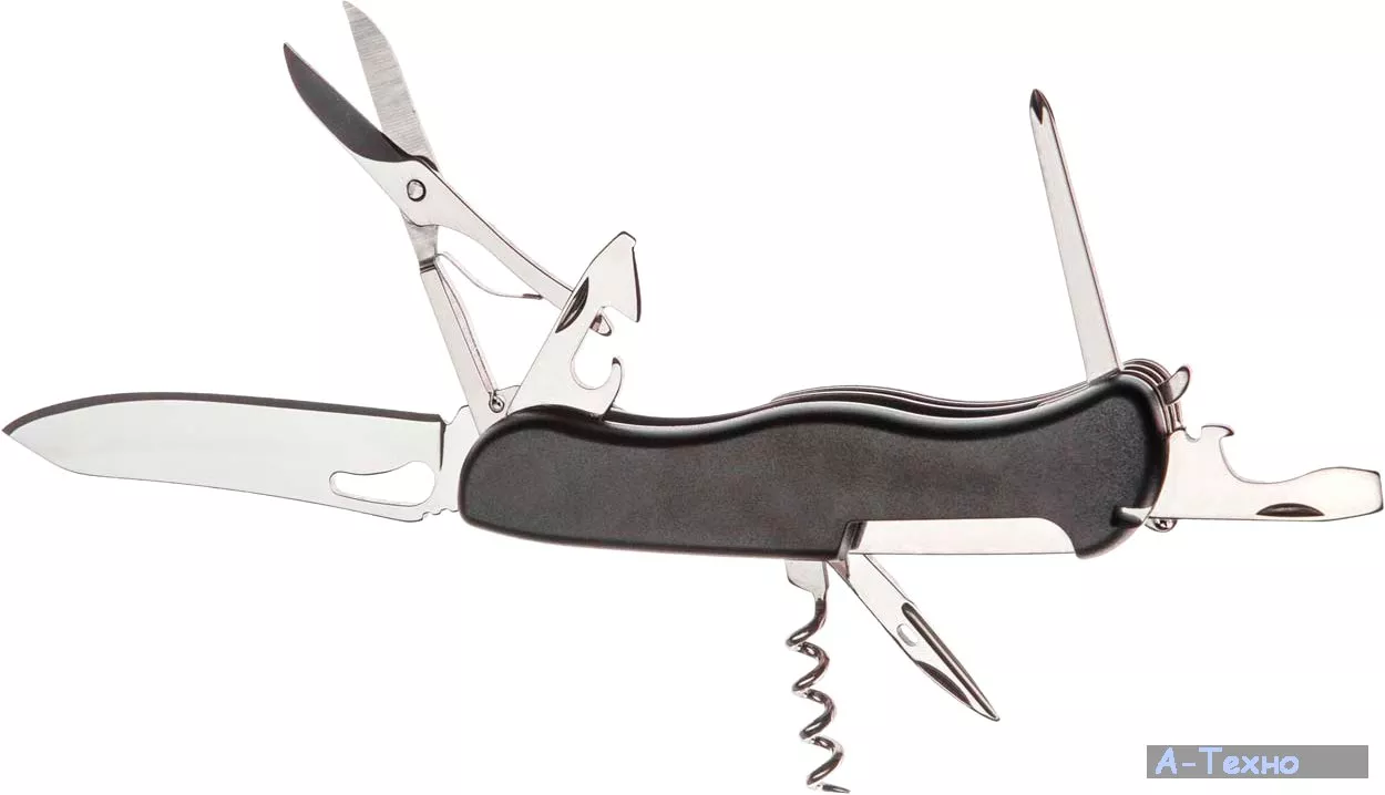 Нож PARTNER HH032014110 B black (HH032014110B) представляет собой качественный складной нож, который помимо большого клинка с надежным механизмом фиксации Liner Lock оснащен дополнительным набором инструментов, что позволяет использовать его в качестве полноценного мультитула.