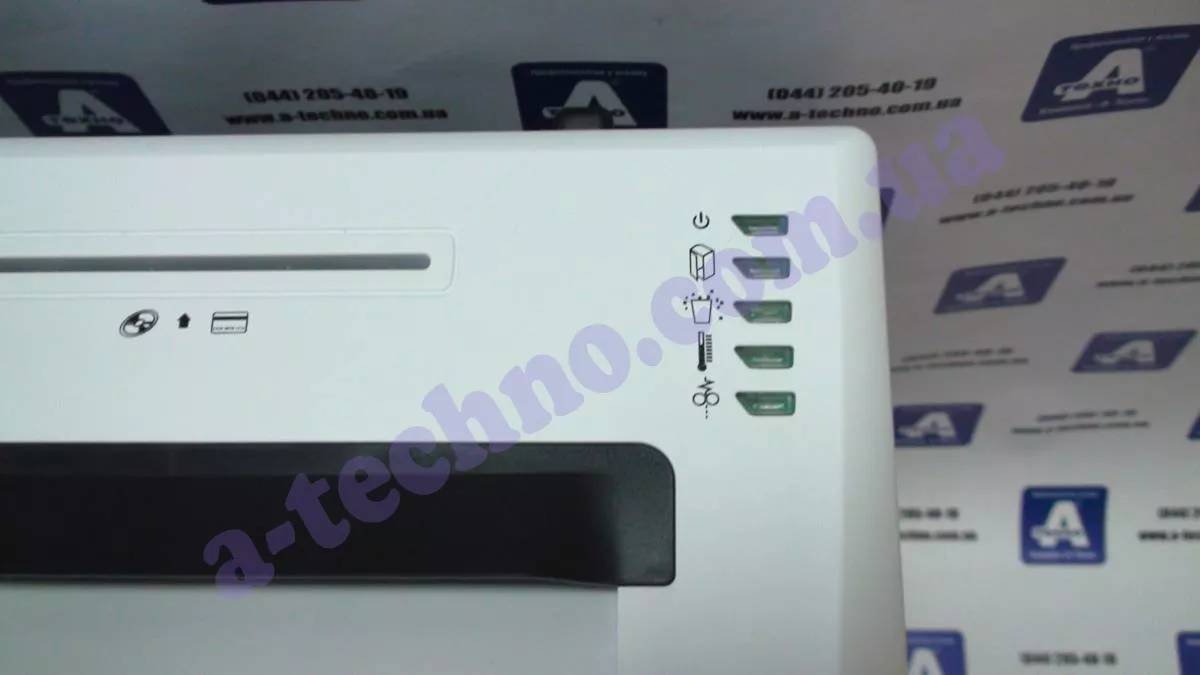 У модели очень прочные ножи из закаленной стали. Есть необходимая термозащита от перегрузки. Модель легко уничтожает скобы, скрепки, диски, кредитные и дисконтные карты.