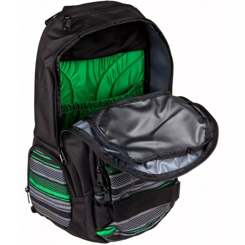 Стрепы для переноски скейта указывают на то, что он будет незаменимым помощником для скейтеров. Отделение для солнцезащитных очков с флисовой подкладкой. Боковые карманы на молнии. Удобные широкие лямки позволят равномерно распределить нагрузку на плечи при загрузке рюкзака, что очень важно при долгом ношении. Данная модель выполнена из уникальной прорезиненной ткани, которая быстро высыхает, великолепно сохраняет форму, устойчива к световому и тепловому воздействию, не промокает и проста в уходе.