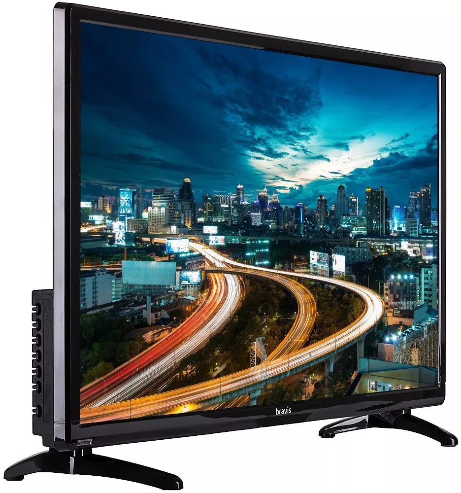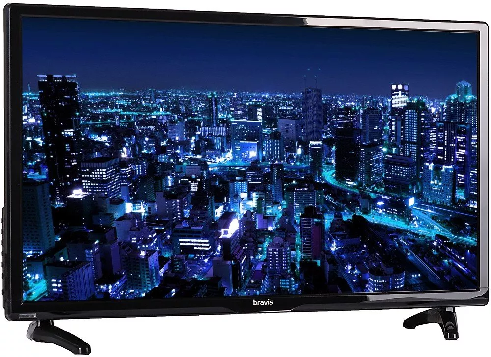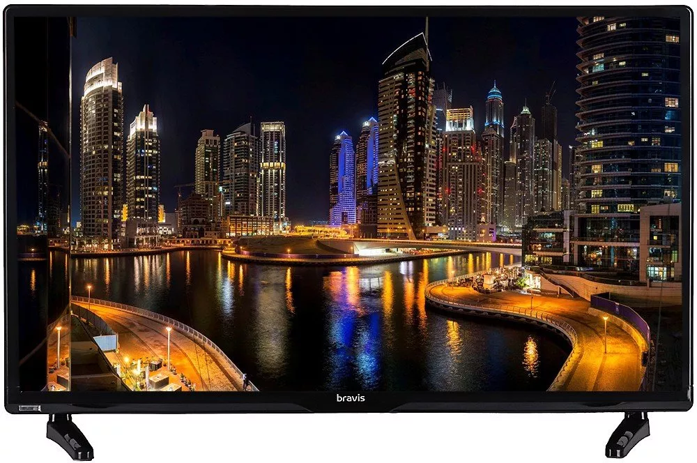 Телевизор BRAVIS со светодиодной подсветкой обеспечит качественный просмотр фильмов и телепередач. Модель заключена в прочный пластиковый корпус черного цвета и оснащена V-образными ножками для устойчивого расположения на поверхности стола.