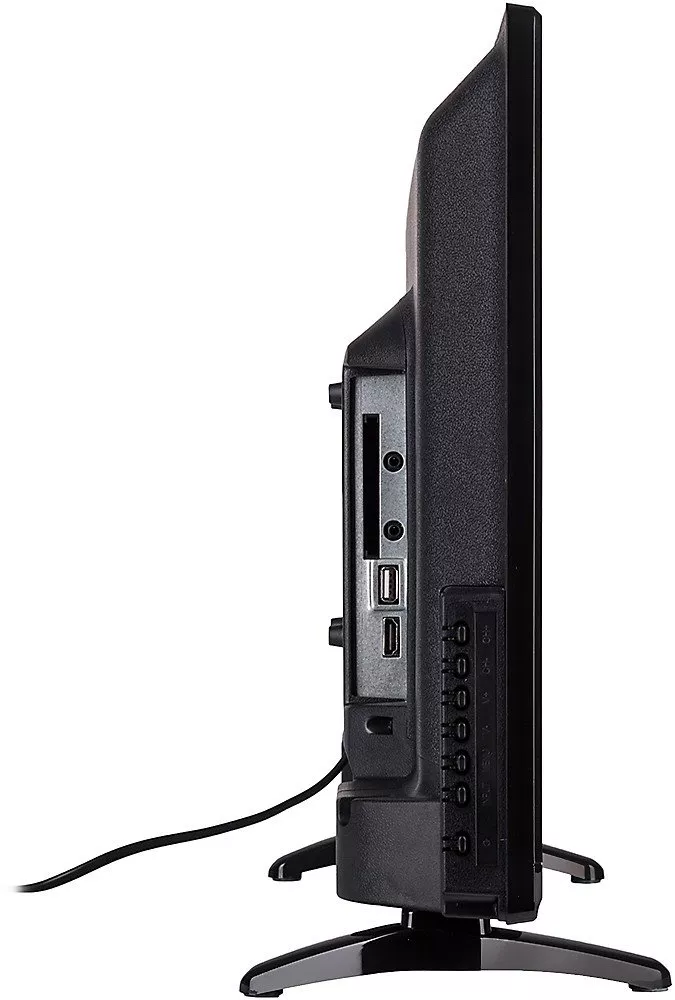Устройство обладает экраном диагональю 22 дюйма и подойдет для установки в кухне или другой небольшой комнате. Разрешающая способность Full HD позволит просматривать фильмы в высоком качестве, во время воспроизведения которых картинка будет иметь высокую детализацию и плавные переходы цветов. Благодаря частоте развертки 60 Гц изображение будет реалистичным во время просмотра динамичных сцен в экшен-фильмах, спортивных программах и трансляциях. В телевизоре имеется два встроенных динамика с общей мощностью 4 Вт.