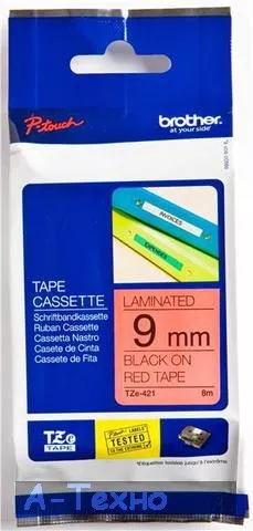 Brother 9mm Laminated red, Print black (TZE421) - ламинированная клеящаяся лента.
