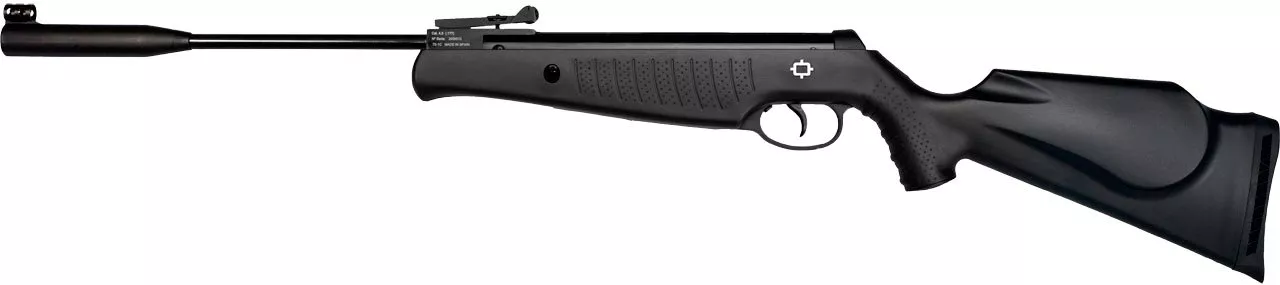 Винтовка оснащена эргономической ложей со специальными насечками для максимально удобного взведения и открытыми прицельными приспособлениями с микрометрическим целиком.