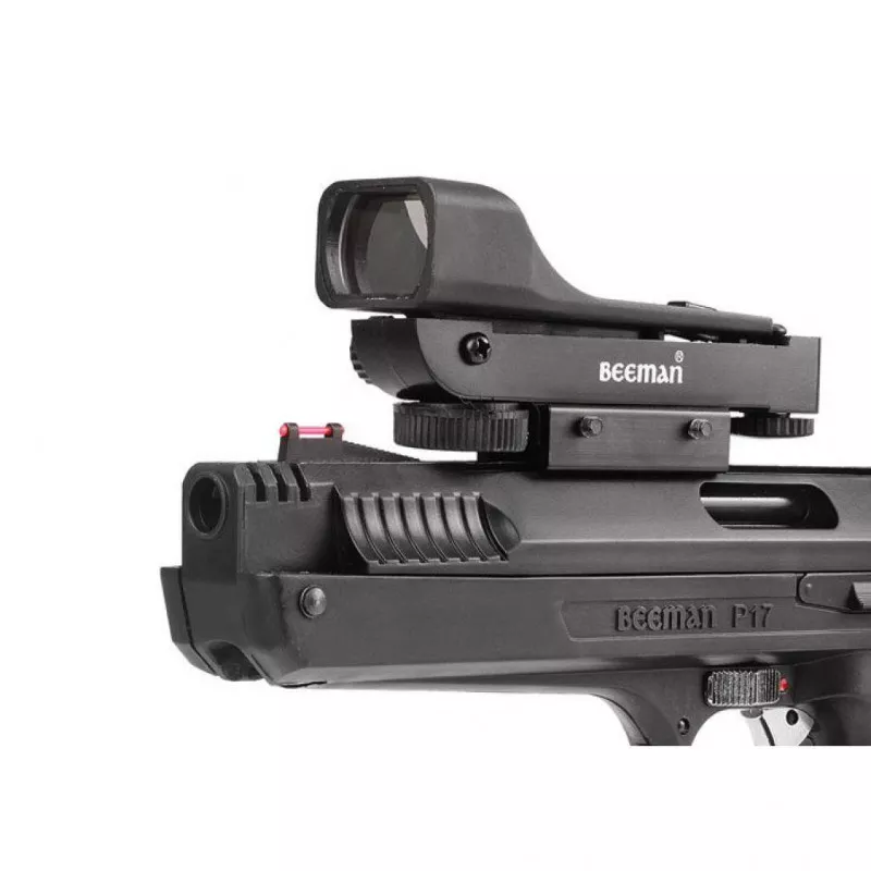 Для более комфортного прицеливания пистолет оснащен коллиматорным прицелом с возможностью регулировки.