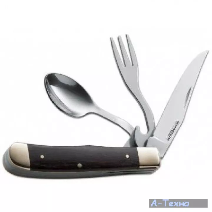 Клинок, вилка с открывалкой и ложка изготовлены из нержавеющей стали 440А.