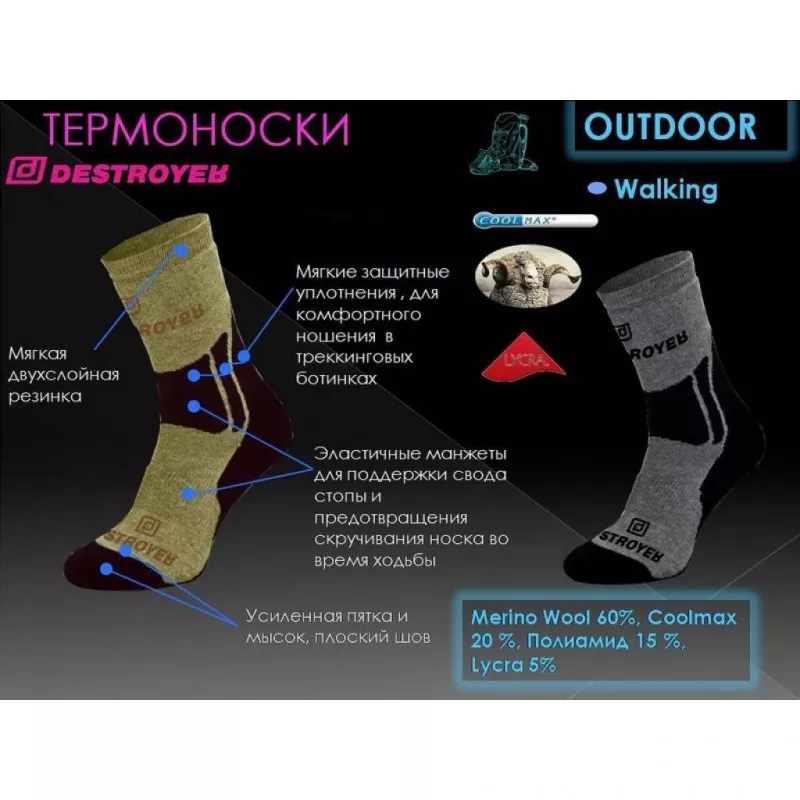 Носки Tramp Outdoor Walking прекрасно подходят для трекинговой обуви. Сезон использования — весна и осень и не очень холодная зима.