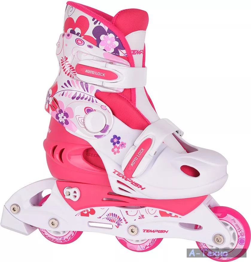 Tempish FLOWER Baby skate - отличный комплект для Вашего ребенка, включающий в себя раздвижные роликовые коньки для фитнеса и отдыха, как для начинающих так и для продвинутых роллеров, рюкзак, наколенники, налокотники, защиту на запястья и шлем.