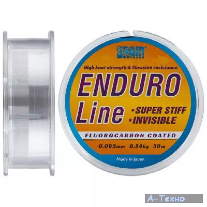 Высококачественная нейлоновая леска Brain fishing Enduro предназначенная для использования в качестве материала для вязания поводков и прочих оснасток, ее поверхность дополнительно покрыта защитным слоем из флюорокарбона.