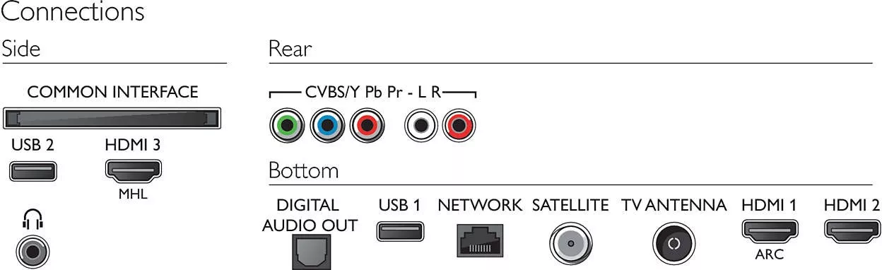 Интерфейсы подключения | аудиовход, 1 х оптический аудио, Component In (Y/Pb/Pr), 3 х HDMI, антенный, Headphone, CI+, 2 х USB, 1 х RJ-45, 1 x Спутниковый вход |