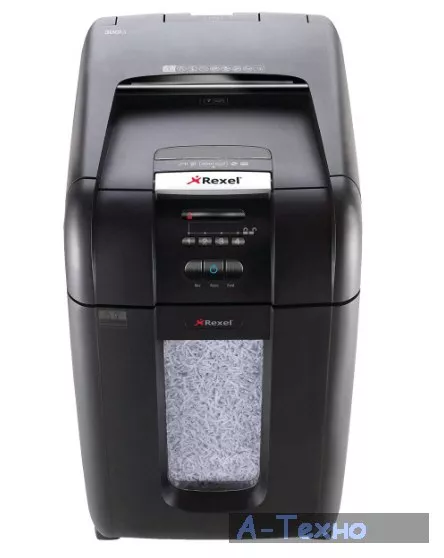 Уничтожитель бумаги, документов Rexel AUTO+ 300X. Автоматический уничтожитель экономит время, избавляя от необходимости загружать бумагу вручную и предварительно удалять скобы или скрепки. Он предусматривает автоматическую подачу, так что остается только загрузить 300 лист. А4 — остальное шредер сделает сам. Автомат. удаление замятых листов. Защита от перегрева и индикатор охлаждения. Блокирование с помощью пин-кода. Ручная подача до 8 лст. фрагмент 4х40мм, Урна 40 литр. Разрезает: CD/CC, скобы, скрепки. Низкий уровень шума,