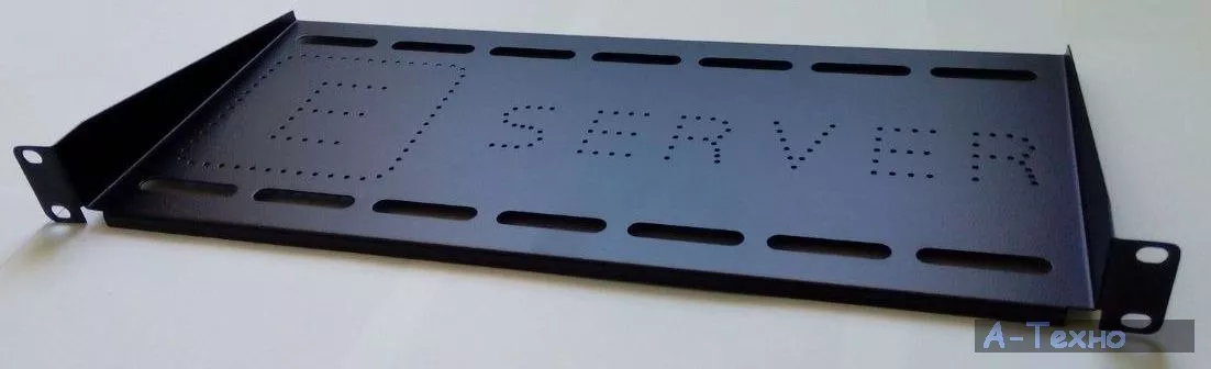 Полка имеет четыре точки крепления на передних и задних вертикальных направляющих и раздвижную систему для фиксации полки. За счет этого достигается универсальность применения и независимость от внутреннего исполнения шкафов различных производителей. Глубина рабочей поверхности полки 200 мм.