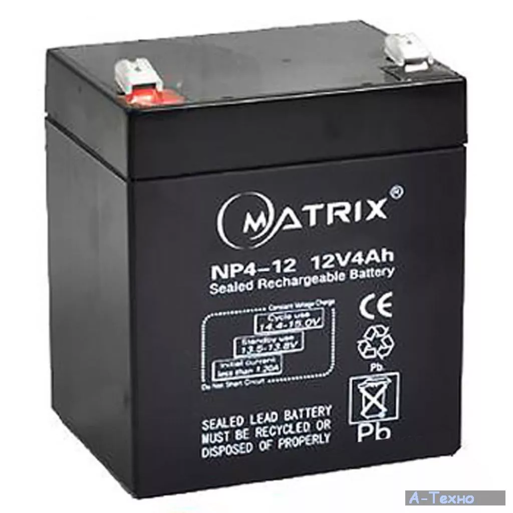 Особенности Matrix 12V 4AH :герметичная конструкция. Необслуживаемая: не требует ухода и способна работать в любом положении. Отсутствие эффекта памяти после использования или повторяющихся разрядов. Низкий саморазряд. Широкий диапазон рабочих температур. Емкость 4 А*ч .
