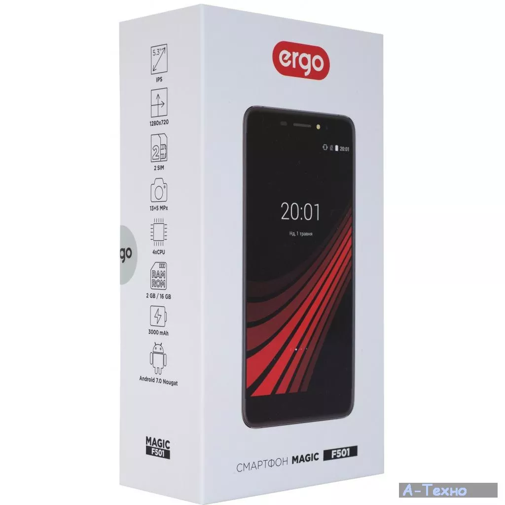 Смартфон ERGO F501 Magic Dual Sim Black получил прочный корпус толщиной 9.2 мм. Экран покрыт высококачественным 2.5D стеклом, которое придает оформлению гаджета дополнительную изысканность. Легкий смартфон (184 г) с закругленными гранями удобно ляжет в вашу ладонь. За длительную автономную работу устройства отвечает аккумулятор емкостью 3000 мАч.