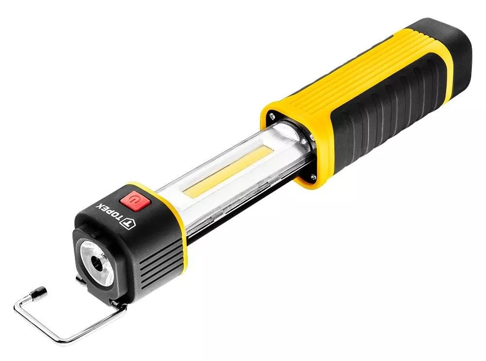 Фонарь TOPEX оснащен 2 мощными источниками света. Боковой источник света мощностью 180 люменов, торцевой источник света мощностью 70 люменов. Боковой источник света можно спрятать в корпусе (раздвижной корпус). Запитывается четырьмя батарейками AAA. Крючок позволяет подвесить лампу в любом месте. Магнит в корпусе дает дополнительные возможности крепления лампы. Универсальная лампа для применения дома, в автомобиле, мастерской, гараже, погребе, в турпоходе.