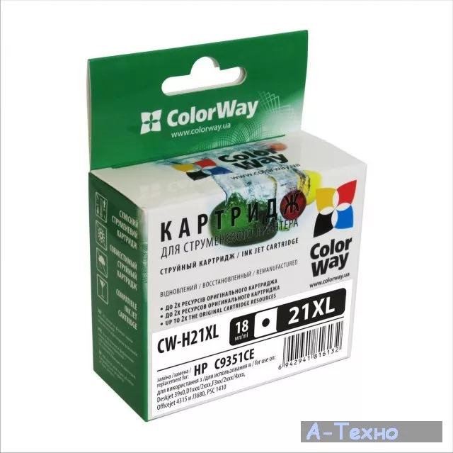 Приобрести Картридж ColorWay HP №21XL Black (аналог C9351CE) (CW-H21XL) Вы можете в компании "А-ТЕХНО", оформив заказ на этом сайте через корзину или позвонив по указанным телефонам.