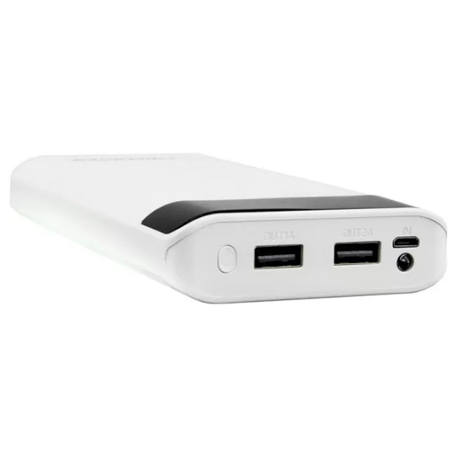 Ёмкость 17400 мА·ч. Выходные порты и интерфейсы: 2 × USB. Выходной ток USB, макс.: 1 А. Выходное напряжение USB, макс.: 5 В. Выходной ток DC, макс.: 2.1 А. Входные разъёмы/коннекторы: Micro-USB. Тип батареи: Li-Ion. Особенности: LCD дисплей, фонарик. Материал корпуса: пластик. Цвет White
