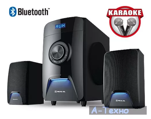 Мультимедийная акустическая система 2.1 Real-EL M-570 имеет широкий функционал совмещенный с современным дизайном. Сабвуфер в деревянном корпусе и приятной подсветкой добавит низких частот и расширит диапазон воспроизведения, а также усилит спецэффекты в играх и фильмах. В данной модели есть все необходимое – встроенное FM-радио, караоке, разъемы для подключения USB Flash и SD-card, модуль Bluetooth, встроенный проигрыватель аудиофайлов, удобный пульт управления и даже информативный LED-дисплей.