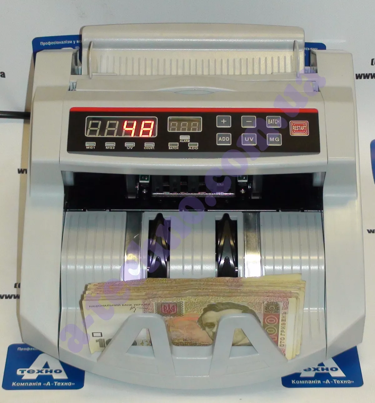 Счетчик банкнот, купюр BCASH K-2108UV. Современный выносливый счетчик валют офисного класса. Вместимость загрузочного кармана - 250-300 банкнот, приемного - 150 банкнот. Скорость пересчета 1000 банкнот в минуту, оснащен LED-дислеем повышенной контрастности. Встроенная ультрафиолетовая (УФ) детекция, детекция по плотности и по размеру.