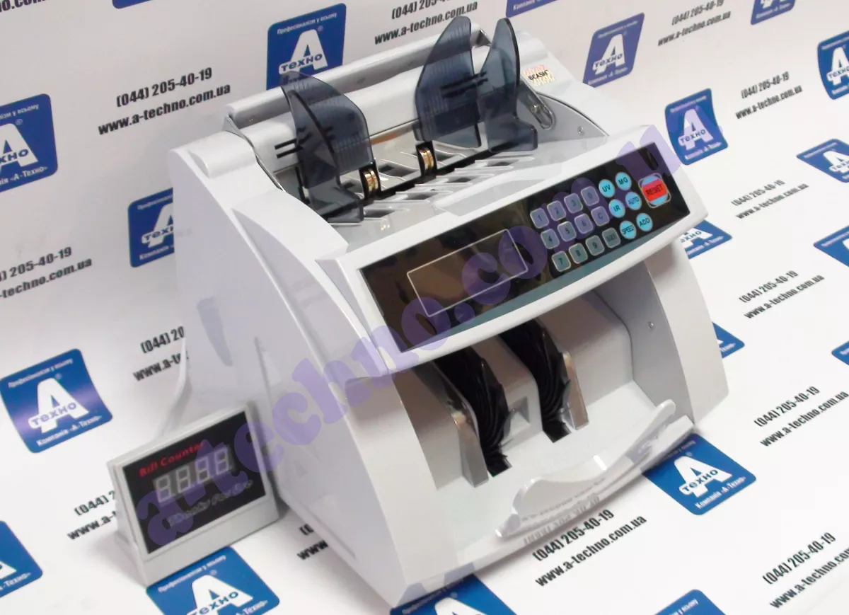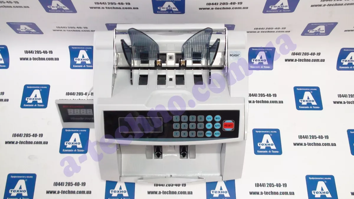 Счетчик банкнот, купюр, денег BCASH 6900T с калькуляцией по номиналам. Профессиональный счетчик валют с проверкой на фальшивые банкноты и калькуляцией по номиналам. Детекция по ультрафиолетовым меткам (UV), магнитным меткам (MG), металлизированной ленты (MT), по плотности (IR), по размеру (DD). Скорость пересчета - 900, 1200, 1500 банкнот в минуту. Вместимость загрузочного кармана 500 банкнот, приемного лотка - 250 банкнот. Возможность отсчета необходимого количества банкнот. Адаптирована под банкноты нового образца - 100, 500 и 1000 грн, а также под новые банкноты ЕВРО и доллары.