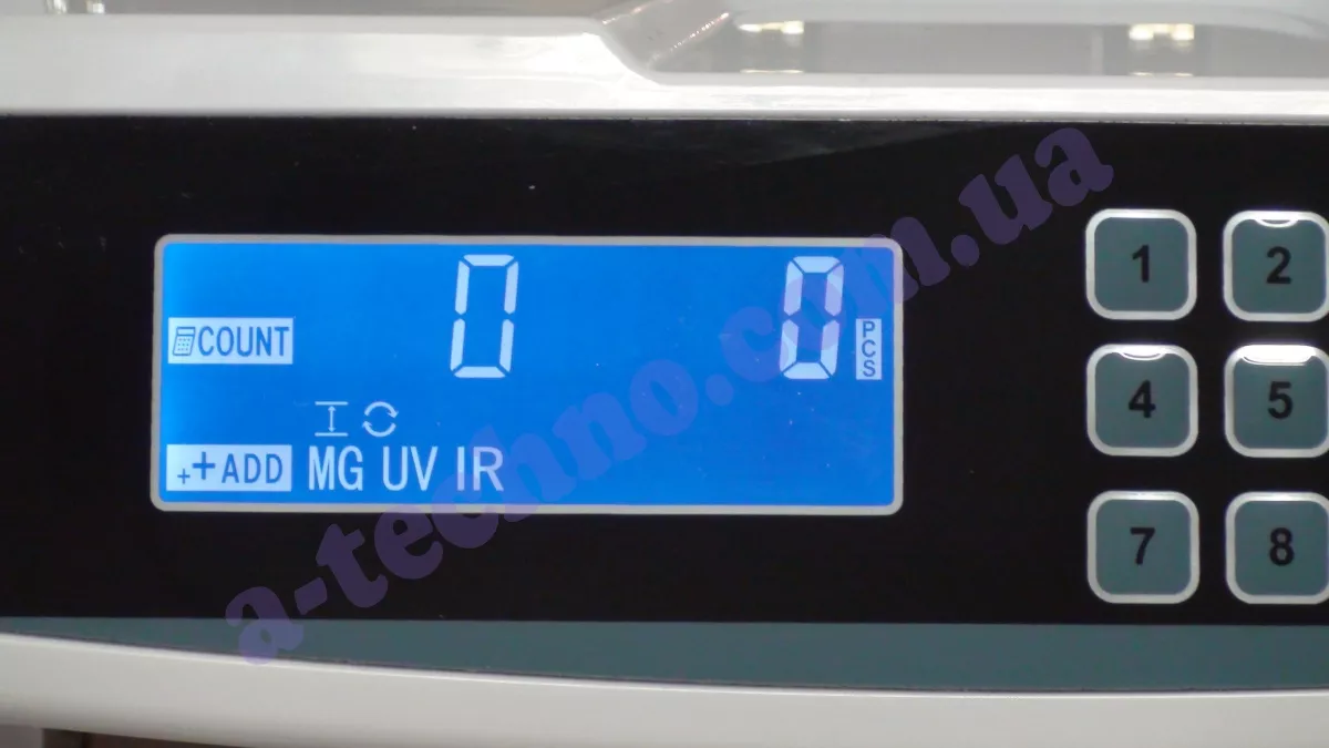 Счетчик банкнот, купюр, денег MBC-3100CL. Скорость счета 900/1200/1500 банкнот в минуту. Режим самотестирования. 3 вида проверки банкнот детекция по УФ излучению, детекция магнитным меткам и детекция по оптической плотности. Остановка пересчета и высвечивание табло обозначения ошибки при: замятии банкноты, половине банкноты, сдвоенной банкноте, слипшихся банкнотах. Звуковая индикация каждой клавиши. Самоочищаящаяся поверхность датчиков. Сохранение в памяти рабочих установок. Режим сквозного суммирования. Режим счета по пачкам. Режим подсчета общей суммы с использованием номинала купюр. Механизм подачи банкнот ролико-фрикционный. Жидкокристаллический дисплей с несколькими секциями счет количества купюр – 3 цифры (подсчет от 0 до 999 купюр), пачка - 3 цифры (формирование пачек с количетсвом купюр от 0 до 999), номинал купюр - 4 цифры (возможность считать купюру в 1000 гривен), общая сумма - 7 цифр (возможность получить сумму до 1000000 гривен). Фасовка банкнот по пачкам 1-999 банкнот в пачке. Емкость входного отсека 500 банкнот. Емкость выходного отсека 200 банкнот. Работа с банкнотами, размер которых: по ширине от 50 до 90 мм по длине от 110 до 180 мм по толщине 0.07 до 0.2 мм.Вес 6 кг. Гарантия 12 месяцев