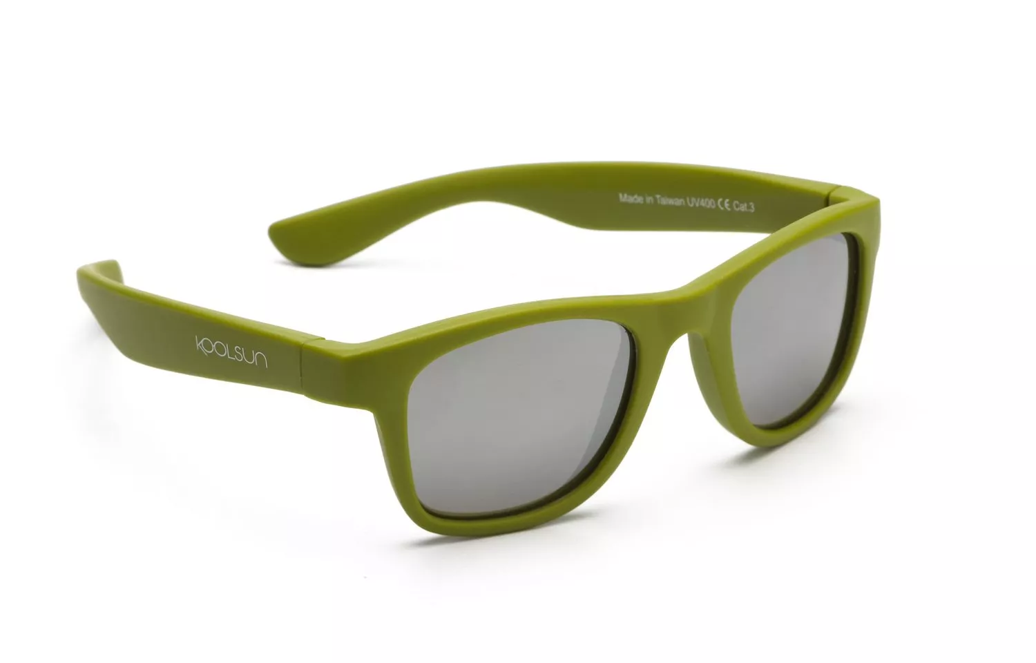 Если вы ищите унисексовые детские очки в уникальном цвете, обратите внимание на солнцезащитные очки KOOLSUN серии WAVE с матовой оливковой оправой и серебристыми зеркальными линзами. Они отлично сидят, гибкие и ударопрочные они не разобьются даже если ребенок упустит их или что-то на них.
