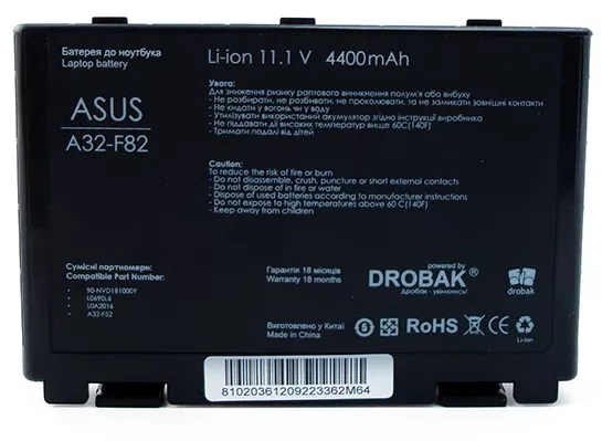 | Современная надежная батарея для ноутбука ASUS A32-F82 от Drobak обеспечит долгое время автономной работы Вашего ноутбука. Так как главное преимущество ноутбука — его портативность, то очень важной является способность его аккумулятора долго держать заряд. Высококачественный литий-ионный аккумулятор Drobak сможет увеличить время автономной работы Вашего девайса. Аккумуляторы Drobak отличаются долгим сроком эксплуатации и длительным временем работы. | ||