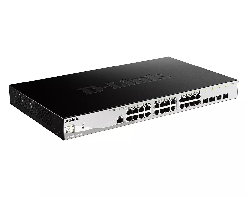 Коммутатор DGS-1210-28MP/ME является идеальным решением для применения в сетях Metro Ethernet. Данный коммутатор оснащен 24 портами 10/100/1000Base-T с поддержкой PoE для подключения по витой паре, а также 4 SFP-портами, применяемыми для организации подключения к высокоскоростной магистрали. Защита от статического электричества 6 кВ обеспечивает устойчивость медных портов к наведенному напряжению, а полный набор функций безопасности и аутентификации защищает сеть от внутренних и внешних угроз.