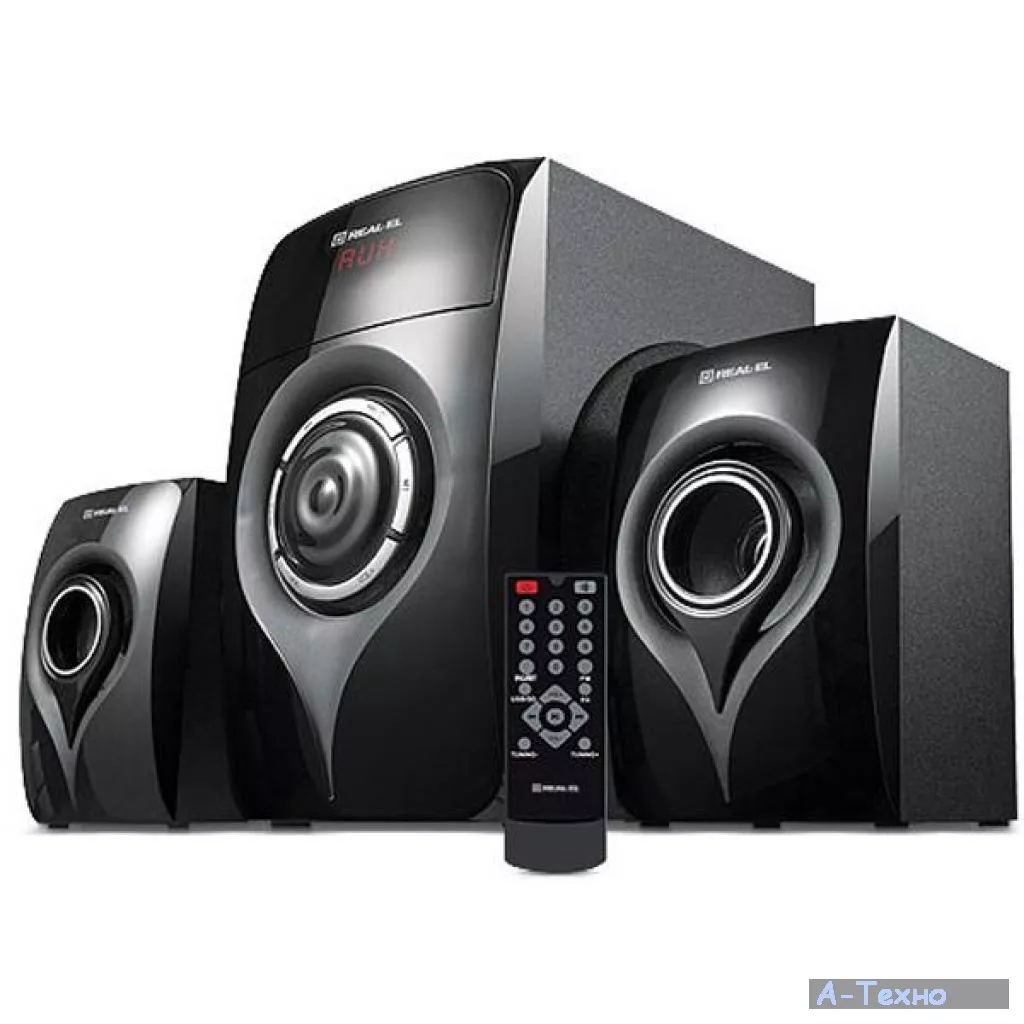 Мультимедийная акустическая система 2.1 Real-EL M-370 имеет широкий функционал совмещенный с современным дизайном. Сабвуфер в деревянном корпусе добавит низких частот и расширит диапазон воспроизведения, а также усилит спецэффекты в играх и фильмах. В данной модели есть все необходимое – встроенное FM-радио, разъемы для подключения USB Flash и SD-card, модуль Bluetooth, встроенный проигрыватель аудиофайлов, удобный пульт управления и даже информативный LED-дисплей.