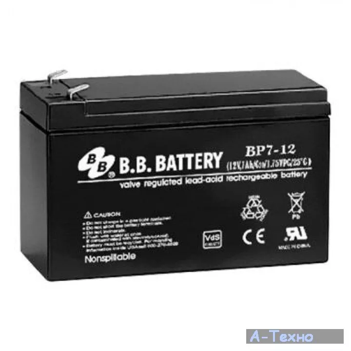 Свинцово-кислотная аккумуляторная батарея B.B. Battery BP 7.2-12 изготовлена по технологии AGM (абсорбированный электролит)