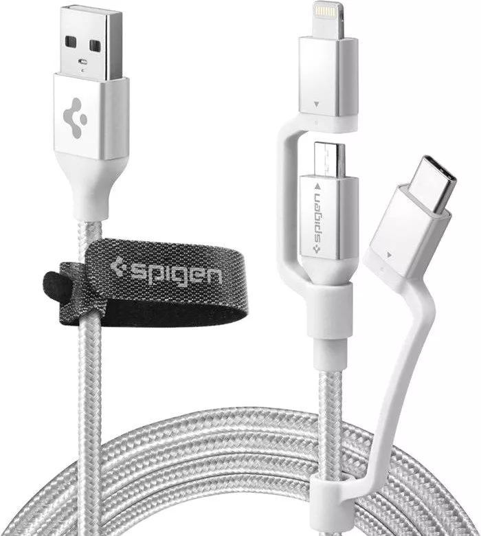 Кабель Spigen Essential стремится обеспечить всеобъемлющую среду Power Power, где бы и когда бы вам не приходилось включать ваши ежедневные устройства. Он поддерживает не только 3 порта в 1 (USB Type C, Micro USB, Lightning), но также поддерживает 3 в 1 Usage Data & Sync & Charging. Дополнительные жесткие кабельные разъемы рассчитаны на длительный срок, чем другие кабели. Quick Charge 3.0 Compatible Cable обеспечивает более быструю зарядку, чем обычные кабели. Непревзойденные нейлоновые кабели премиум-класса с удлиненными кабельными разъемами значительно продлевают срок службы продукта.