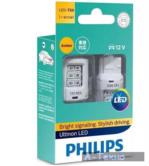 Лампа автомобильная светодиодная Philips WY21W Yellow+smartCanbus Ultinon 12V (11065ULAX2) , 2шт/блистер