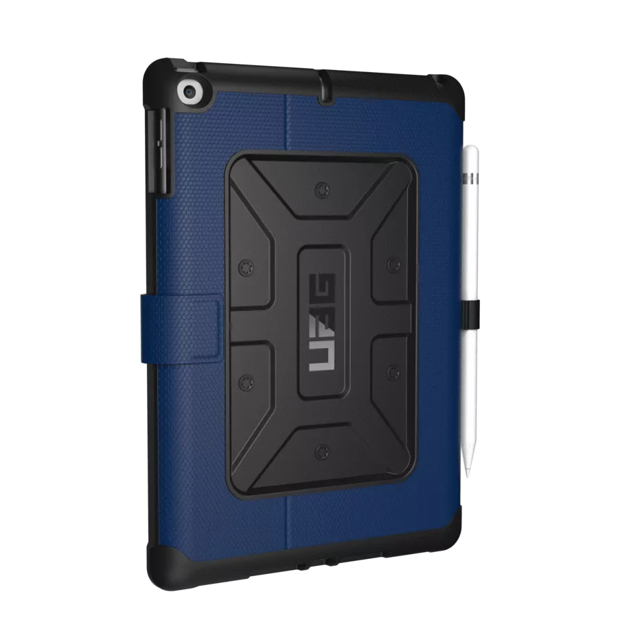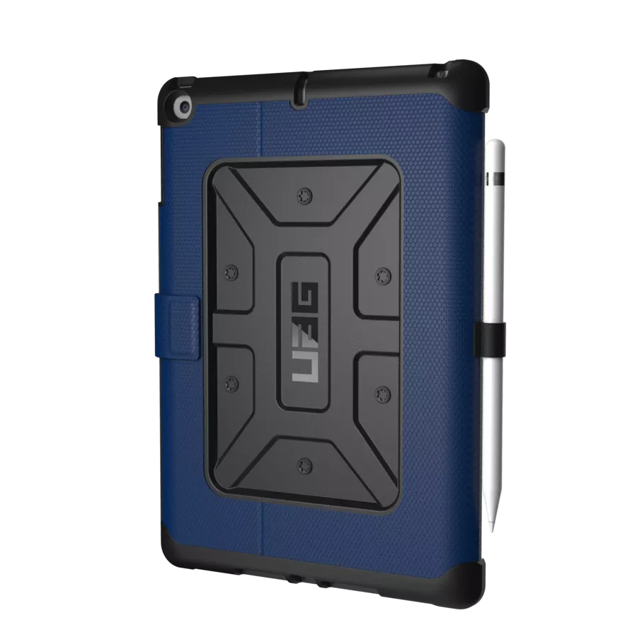 Чехол Urban Armor Gear iPad 9.7 2017/2018 Metropolis Cobalt/Silver Logo (IPD17-E-CB) Ударопоглощающая ультралегкая композитная конструкция, Водоотталкивающий материал, Легкий доступ к экрану и портам, Фото без бликов, звук без скажений, Защита при падении в соответствии с военным стандартом MIL STD 810G 516.6