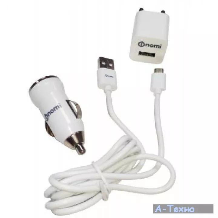 Зарядное устройство Nomi (3 в 1) CK05121 1А White (170682) – комплект состоящий из двух надежных и мощных зарядных устройств: сетевого зарядного устройства и автомобильного устройства. Данный зарядные устройства оборудованы разъемом под USB кабель и подходят для зарядки целого ряда мобильных гаджетов: телефонов, планшетов, навигаторов и других мобильных устройств. Комплектуется USB кабелем.