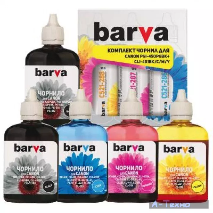 Приобрести Чернила BARVA Canon PGI-450PGBK + CLI-451BK/C/M/Y (5x90 г) SET (CPGI450-5-090-MP) Вы можете в компании "А-ТЕХНО", оформив заказ на этом сайте через корзину или позвонив по указанным телефонам.
