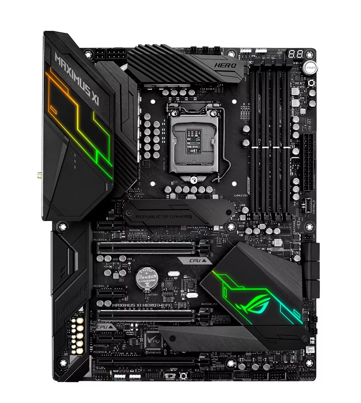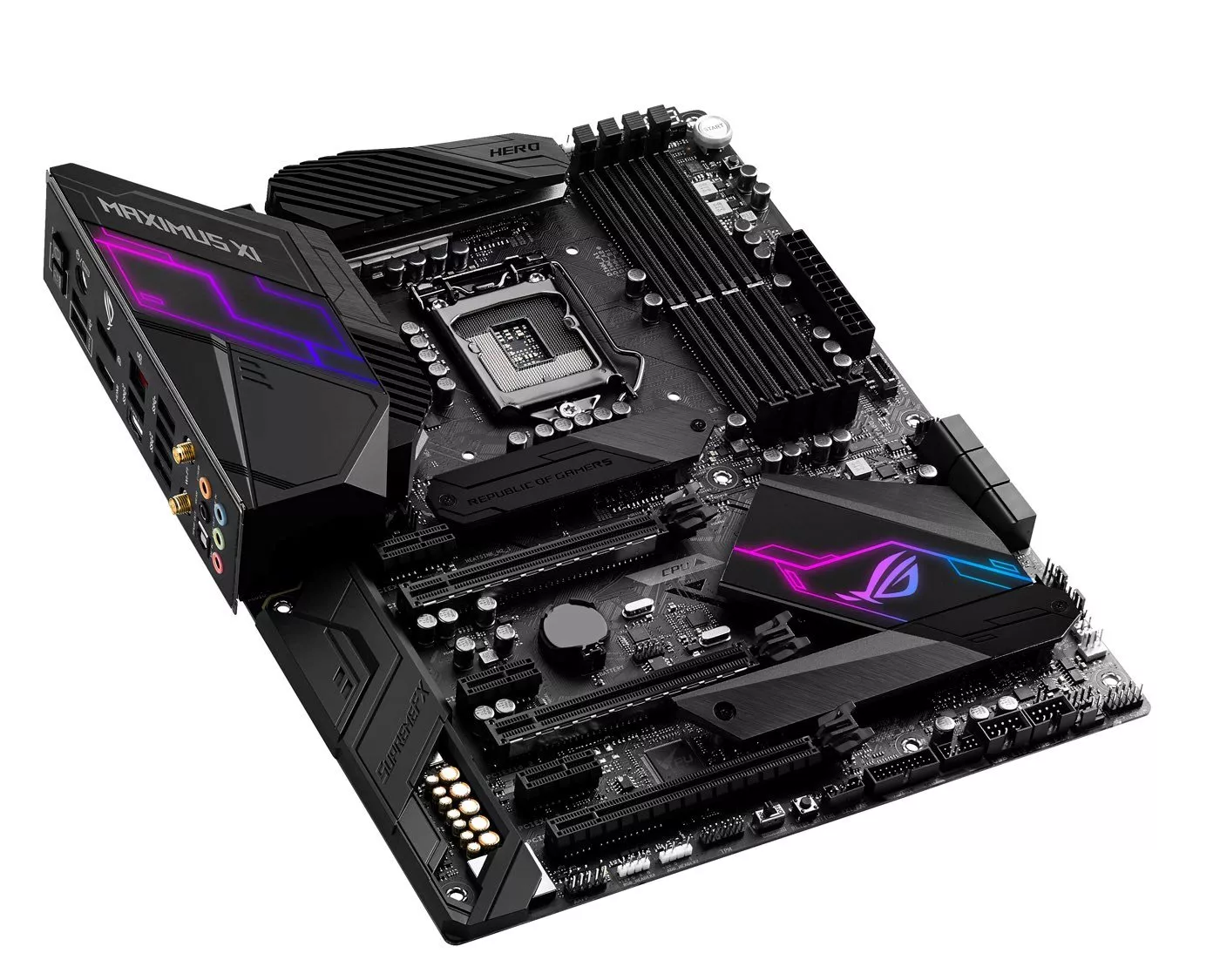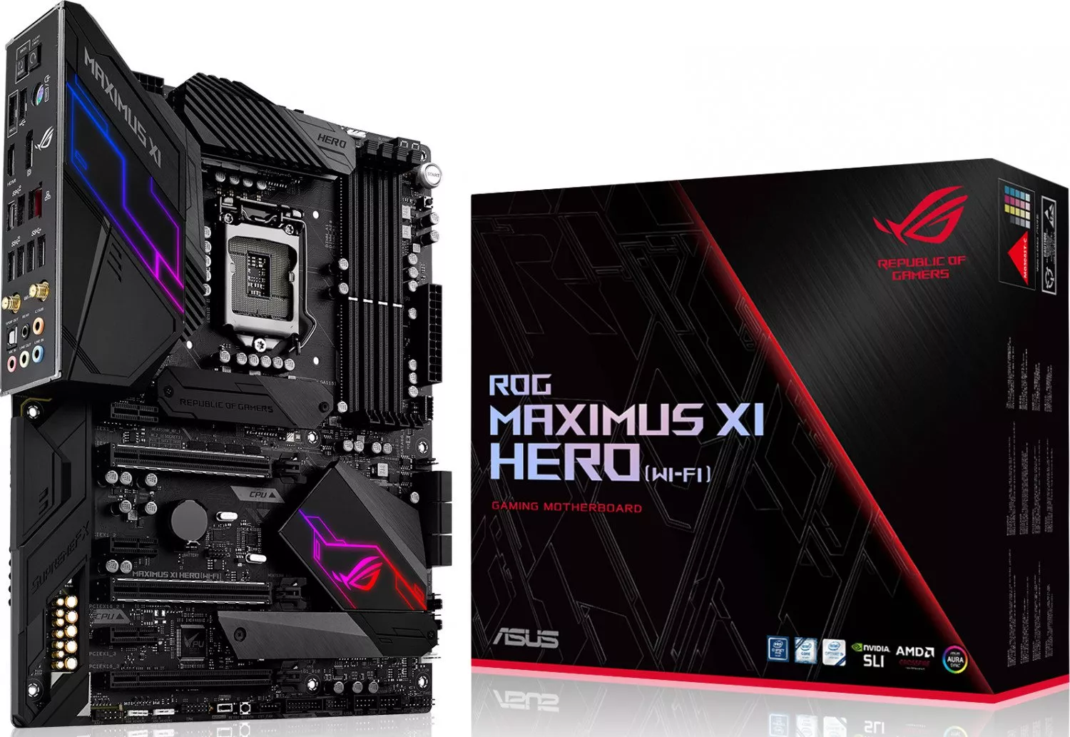 ROG Maximus XI Hero – отличный выбор для тех, кто начинает знакомиться с культовой линейкой геймерского оборудования Republic of Gamers (ROG). Эта материнская плата на базе чипсета Intel Z390 предназначена для построения мощной геймерской системы с продуманным охлаждением и поддержкой высокоскоростной памяти. Заряженная множеством фирменных функций ROG, от разгона в один щелчок мыши до красочной подсветки Aura Sync, Maximus XI Hero всегда готова к виртуальным сражениям.