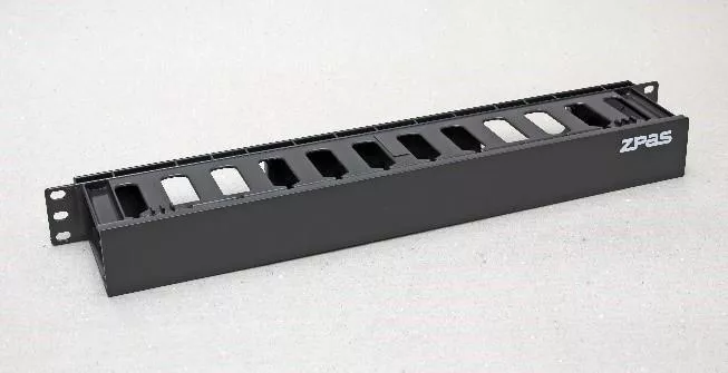 1U пластиковый кабельный органайзер, Материал: пластик, Крышка: плоская, Кол-во отверстий: 12.