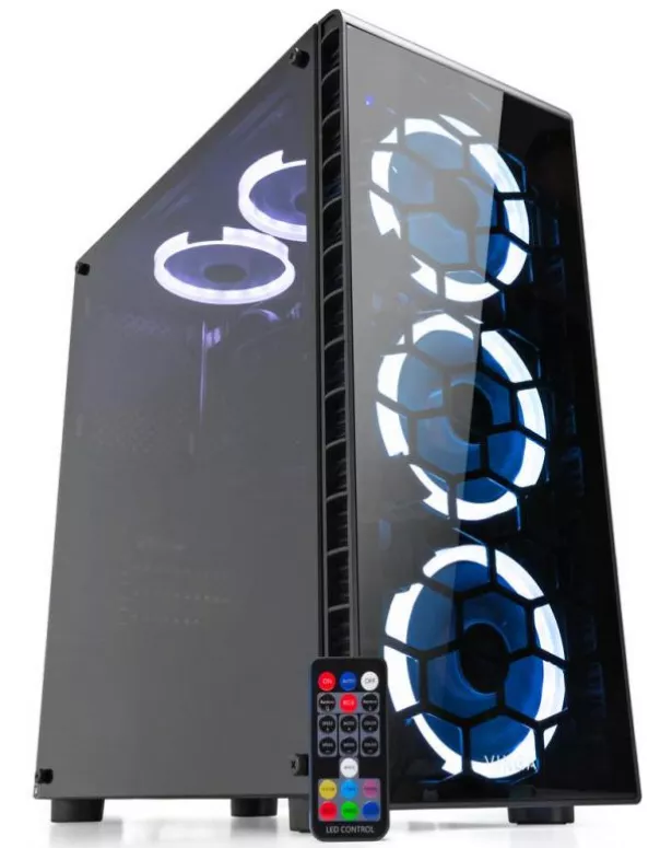 Системный блок этого компьютера собран в корпусе Vinga Orc, выполненном из материалов повышенной прочности. Он позволяет сконструировать достаточно мощный и при этом яркий игровой ПК. Конструкция собрана из коррозиестойкого листового металла и прозрачного ударопрочного пластика. Встроенные вентиляторы оснащены системой подсветки. При этом они не только очень красиво выглядят, но и эффективно выталкивают из корпуса нагретый воздух, тем самым заметно продлевая срок безаварийной работы всех устройств.