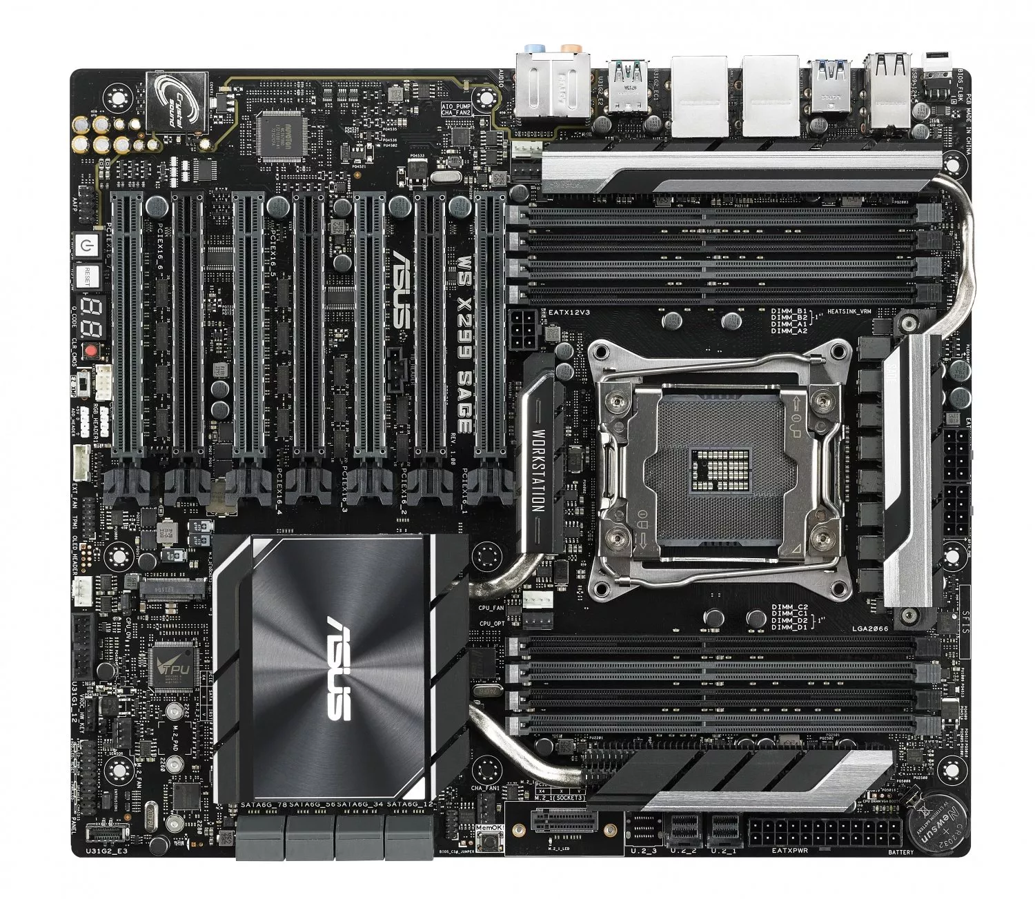 Материнская плата формата CEB с процессорным разъемом Intel LGA2066, четырьмя графическими слотами, современными интерфейсами и программным обеспечением ASUS Control Center