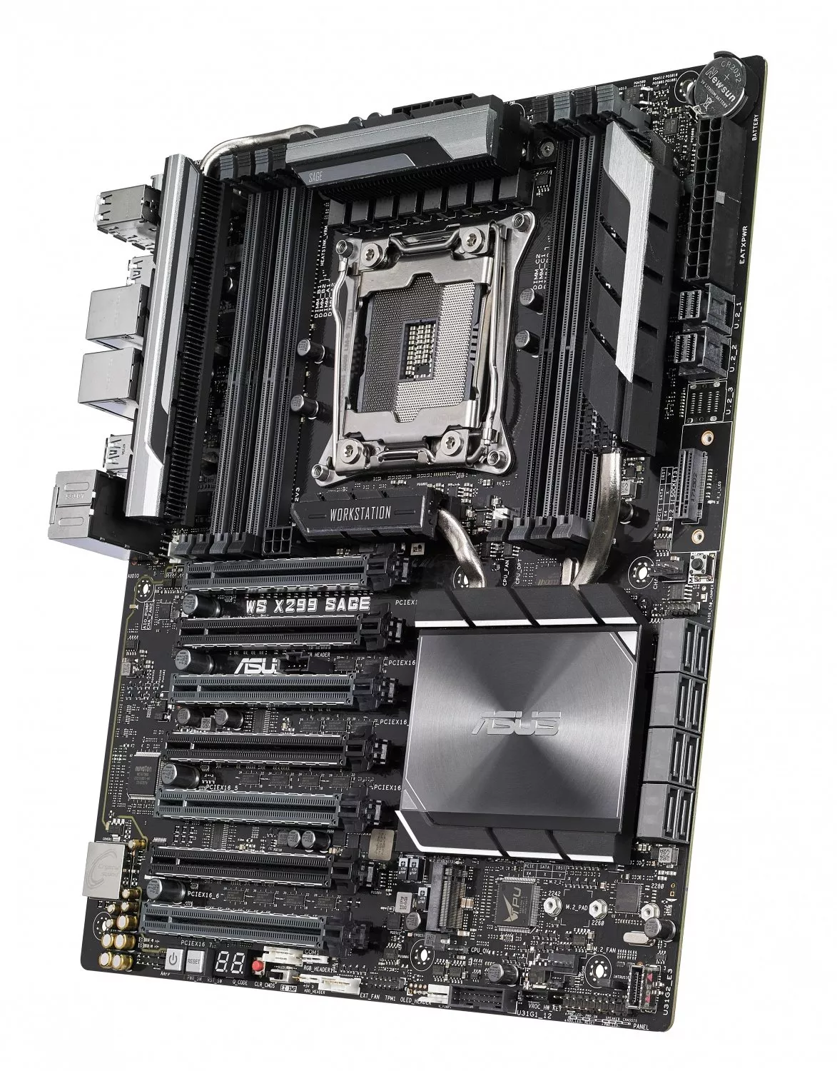 Материнская плата WS X299 Sage – это возможность создания мощной графической подсистемы на базе четырех видеокарт и эффективное охлаждение, что делает ее прекрасным выбором для компьютеров, предназначенных для тяжелой вычислительной работы, например при обучении нейронных сетей. Для увеличения числа доступных линий PCIe на плате применены два коммутатора PLX.